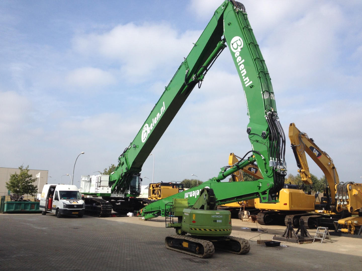 Voor een klant in de sloopsector is op basis van een bestaande sloopkraan een compleet nieuwe, driedelige giek ontwikkeld met een indrukwekkende totale lengte van 46 meter. Naast deze giek beschikt de kraan over twee aanvullende giekconfiguraties, waarmee de machine flexibel inzetbaar is voor verschillende werkzaamheden.